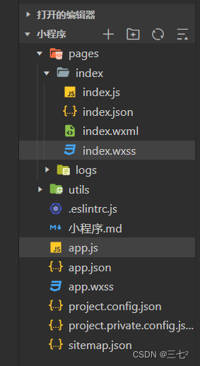 project.config.json 是项目配置文件,用来记录我们对小程序开发工具所做的个性化配置,例如: