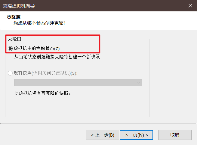 选择克隆自【虚拟机中当前状态】,点击下一页:
