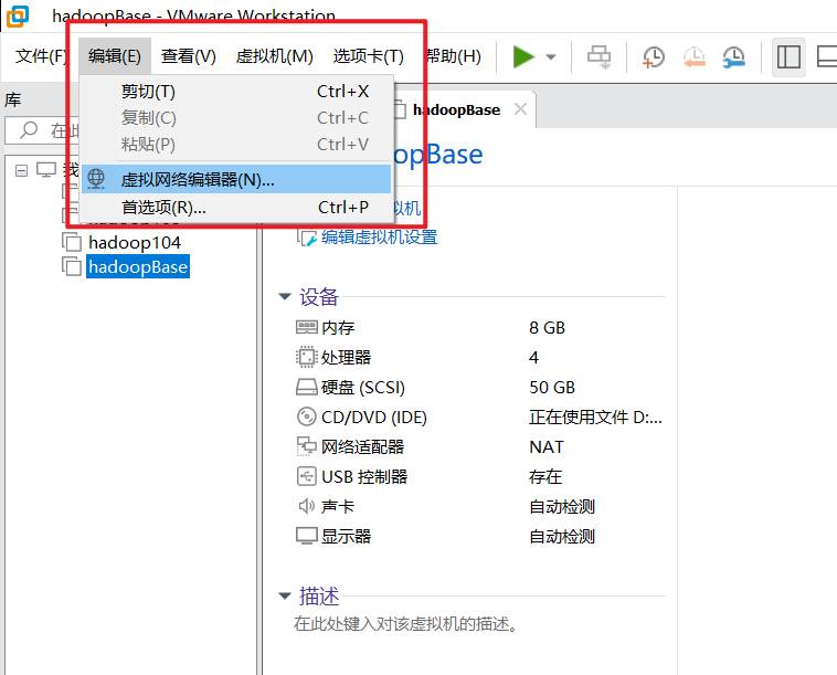 首先需要关闭虚拟机hadoop100;