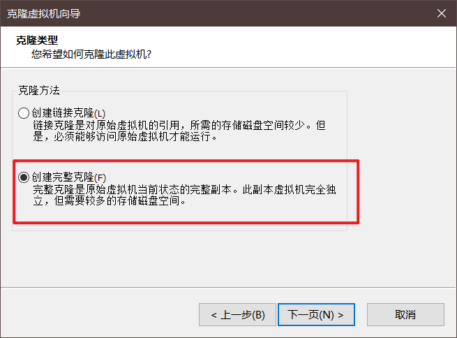 选择【创建完整克隆】,点击下一页: