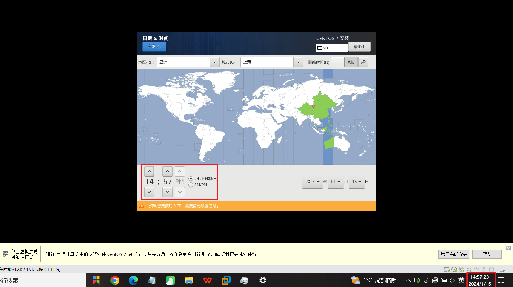 (3)安装其他工具(因为虚拟机的操作系统配置时软件信息选择的是【最小安装】,如果不是的话跳过该步骤):yum install -y vim net-tools psmisc nc rsync lrzsz ntp libzstd openssl-static tree iotop git