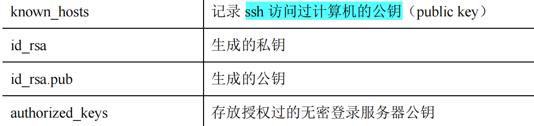 cd ~/.ssh:进入.ssh文件夹(必须先生成密钥才有该文件夹).ssh的内容: