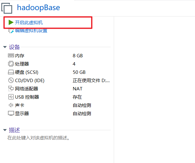 模板虚拟机配置:每台4核、8G内存、50G硬盘