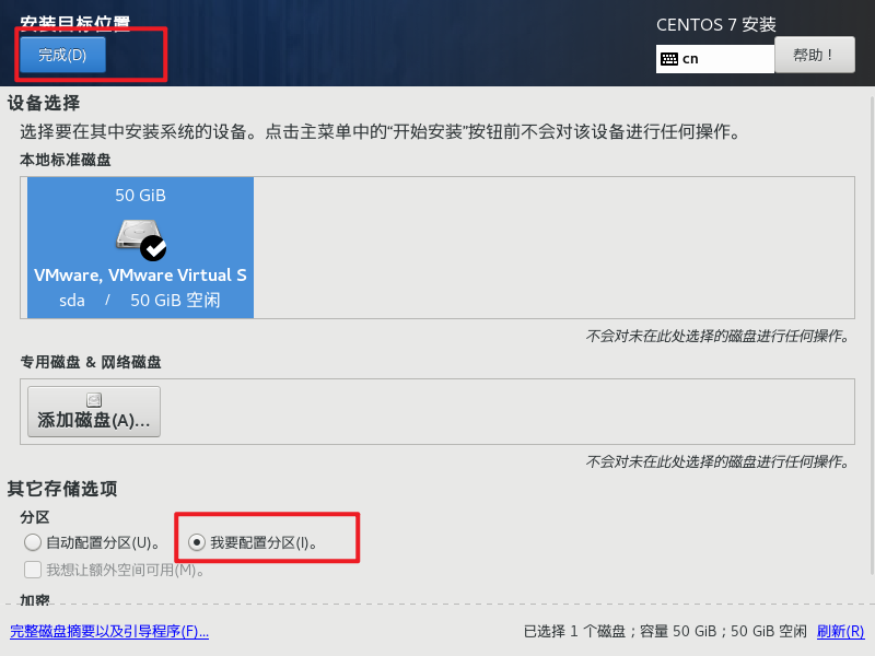 磁盘容量设置为50GB,方便安装大量软件来搭建集群;