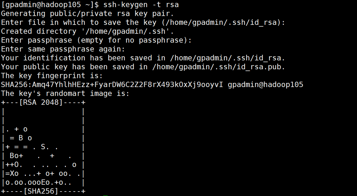 (1)ssh-keygen -t rsa生成密钥文件和私钥文件: