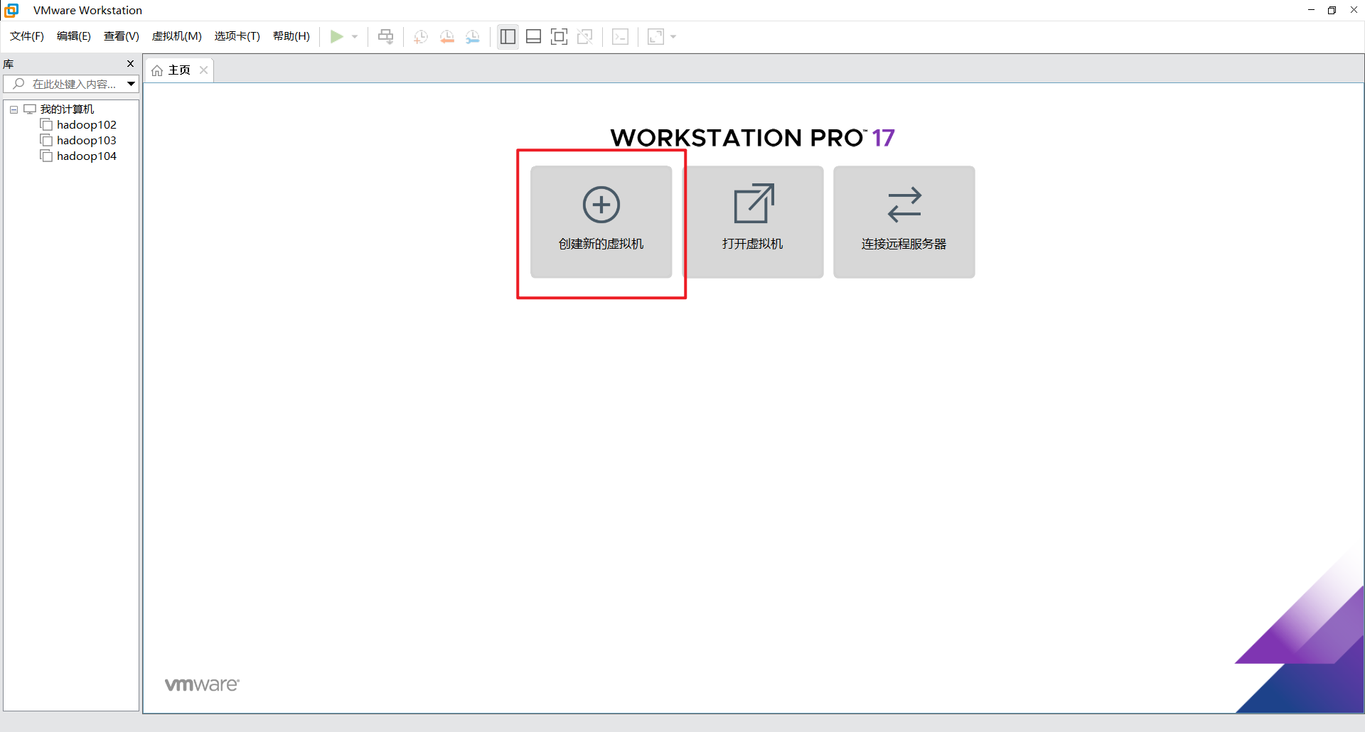在【主页】选择【创建新的虚拟机】
