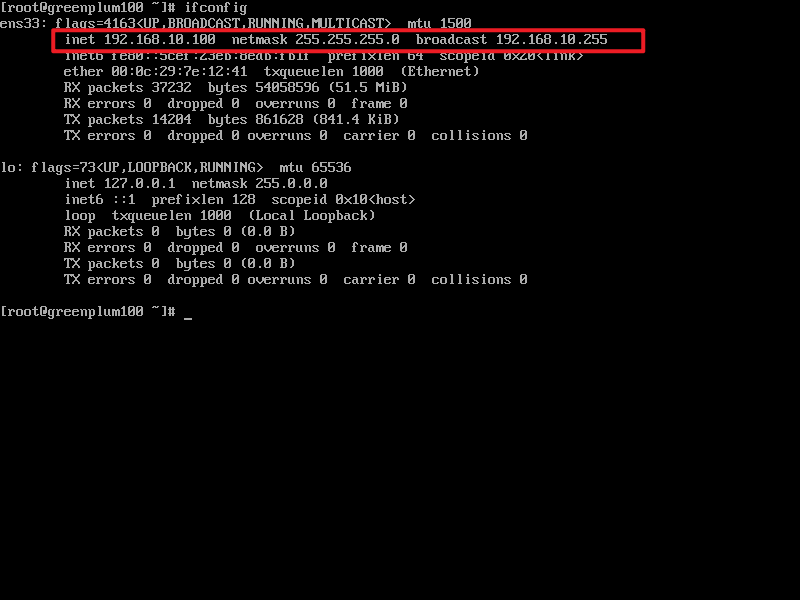 (5)执行ifconfig指令,查看当前IP(如果报错-bash:ifconfig:command not found,则执行yum install net-tools -y安装即可)