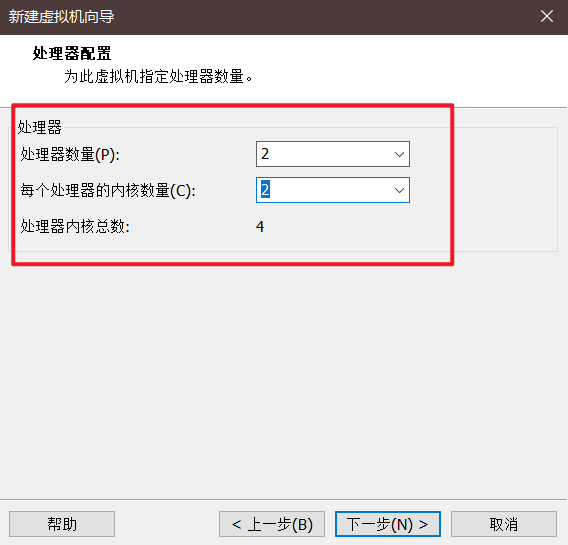 原则上可以设置8个CPU,这里统一设置为4核即可: