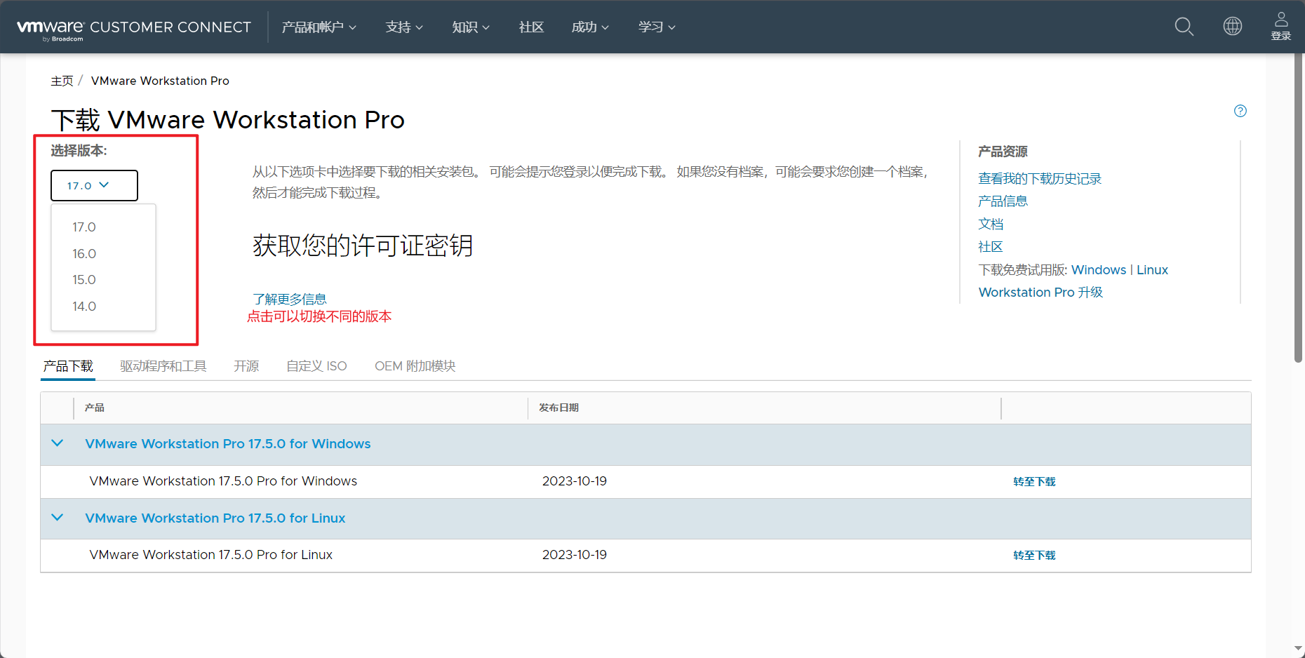 可以看到当前最新的版本是VMware 17;