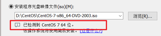 如果之前创建过虚拟机,在【程序光盘映像文件】这里会有选择好的iso文件,可以直接选择;