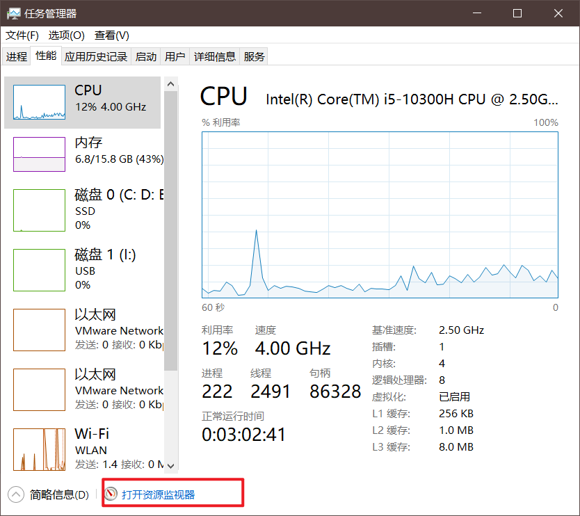其实从【性能】中也能确定CPU的个数: