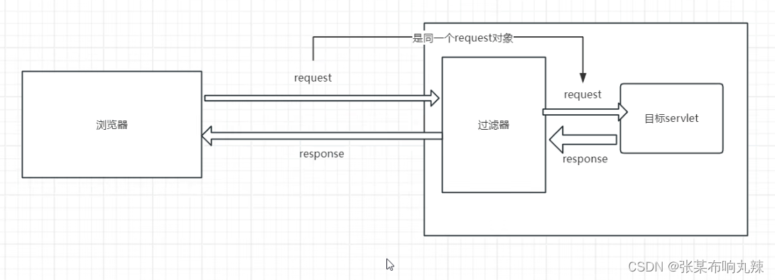 - Filter可以在Servlet这个目标程序执行之前添加代码。也可以在目标Servlet执行之后添加代码。之前之后都可以添加过滤规则。