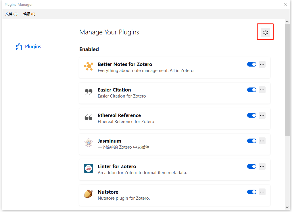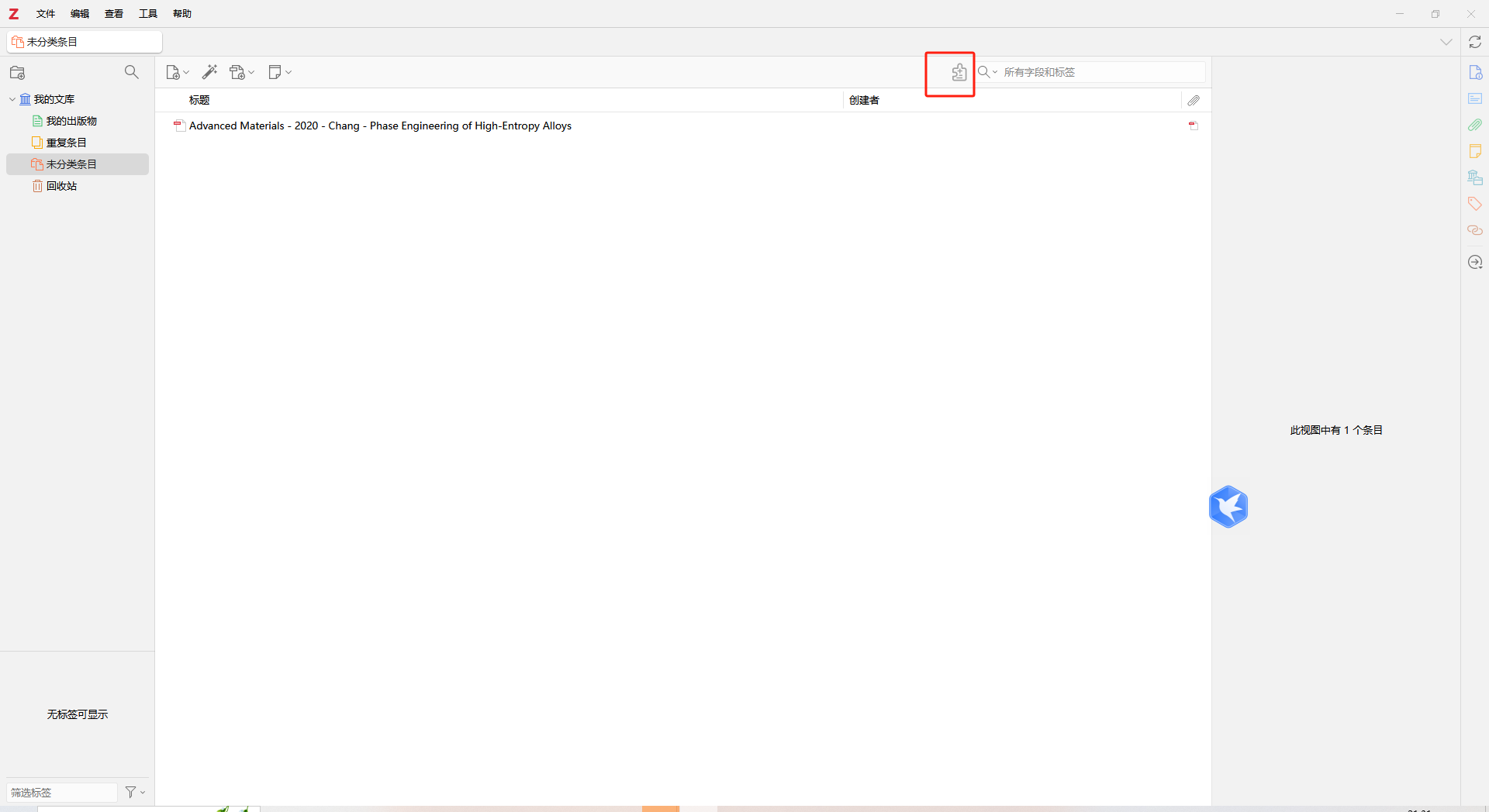 经过第三步安装好插件工具后,zotero首页上方会多出这个按钮