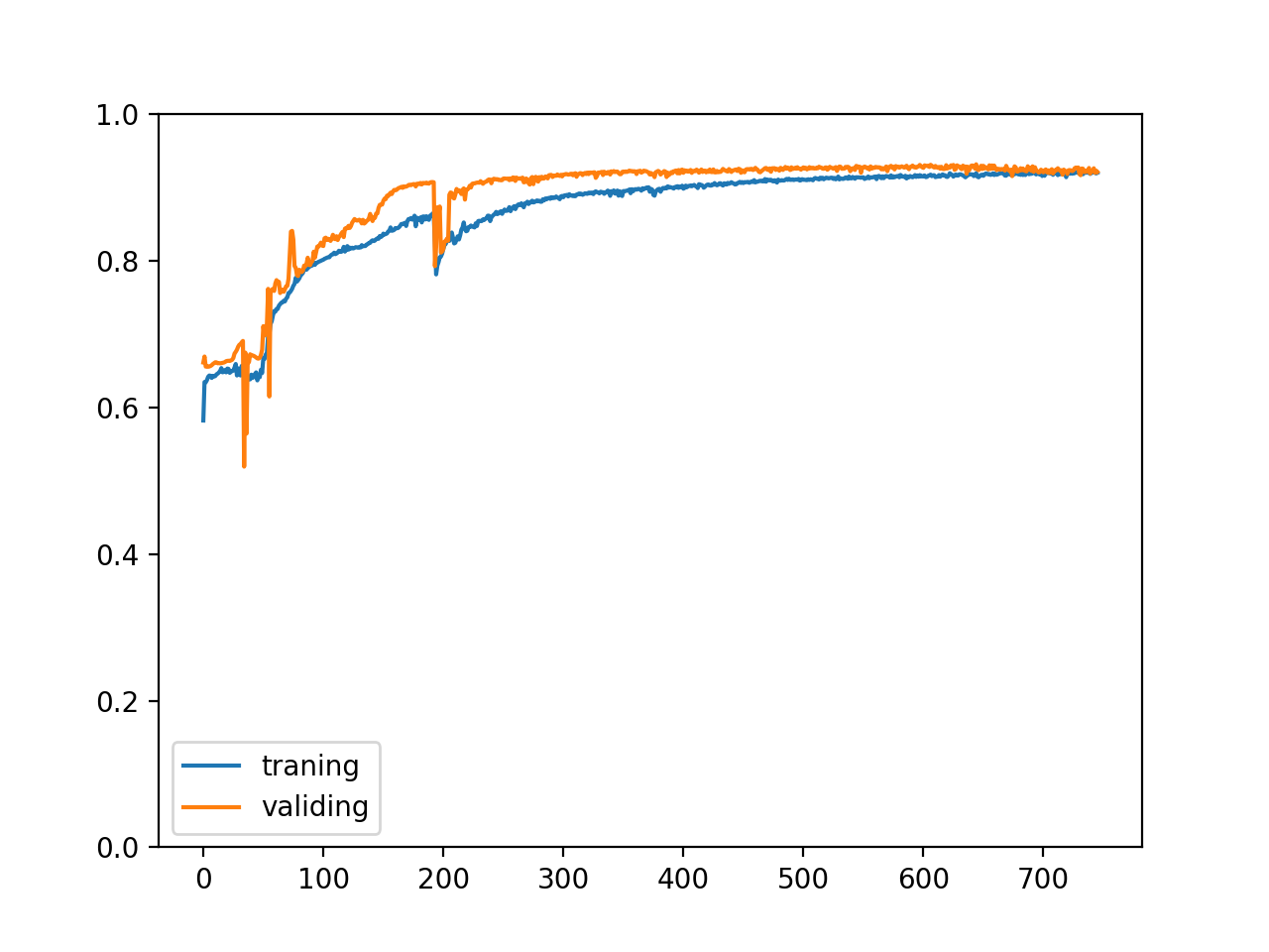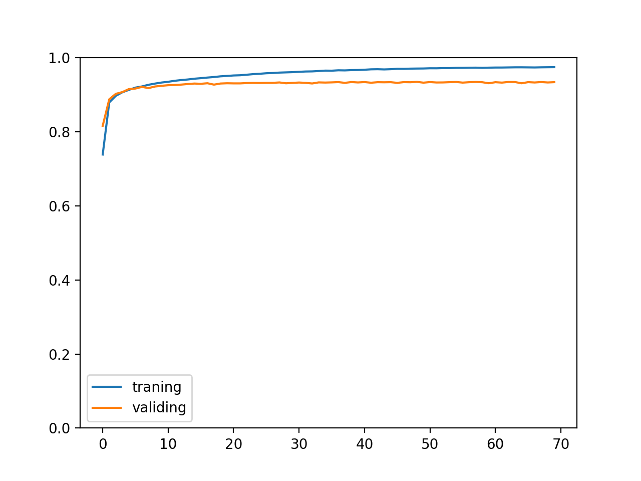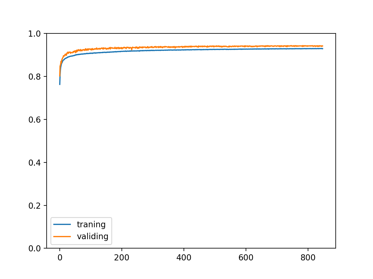 我们可以在训练过程中记录训练集和验证集的正确率变化,以观察是否可以收敛,训练速度如何,以及是否发生过拟合问题,以下是代码例子: