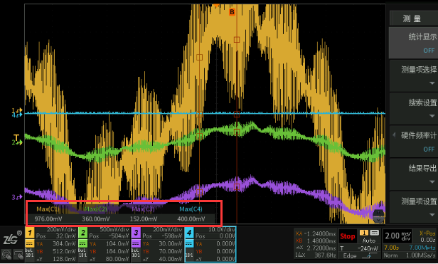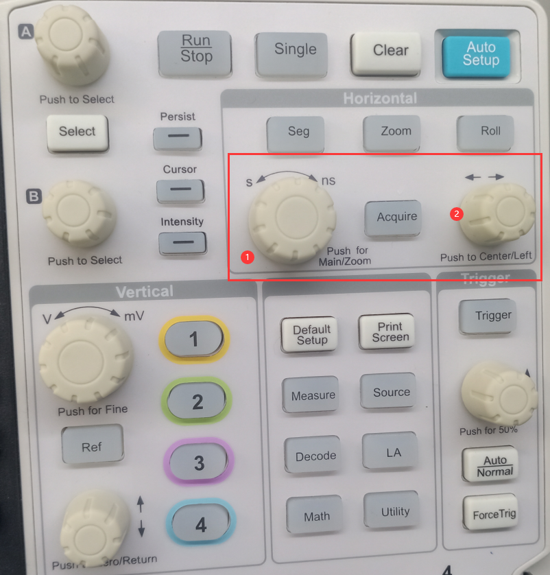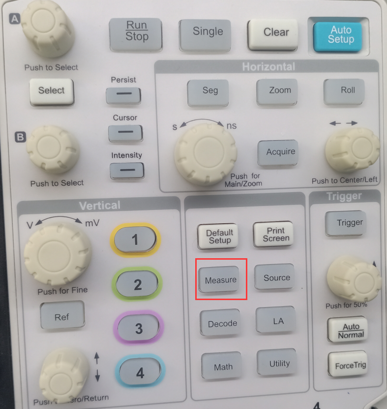 A线与B线间的差值,可以是X轴也可以是Y轴。 - 按下按键后示波器图像停止或开始