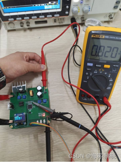 在刚开始调电路时发现总是达不到0V,后来通过示波器测PWM波形发现其PWM波在占空比过小的情况下会出现明显的抖动和失真现象,这是在之前使用STM32单片机所从未遇到的情况,参考数据手册在得知其PWM的性能与其频率和频率有关后,对于PWM频率选定为1K(用于做1V以下的部分),10k(用于做1V以上的部分)发现效果可以达到题目要求,在屏幕的显示上最初想使用串口屏,因其传输速度较快且占用IO口较少,但后来因为硬件电路修改花时间较长,没能来得及学习串口屏的配置和相关编写软件的使用,改用之前用过的中景园IIC的OLED屏幕,串口屏准备在暑假备赛电赛期间学好用熟。