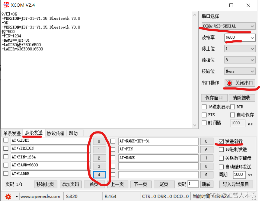 手机与蓝牙通讯 器件:STM32f103zet6、JDY-31蓝牙模块、蓝牙串口助手(手机APP)、USB-TLL下载器、XCOM串口调试助手。【JDY31和HC05蓝牙模块通过串口+AT指令进行配置,然后配对】可以获取和修改蓝牙名称、密码,获取MAC地址等,也可看视频。2.两个蓝牙模块通讯最好选用同一型号的。
