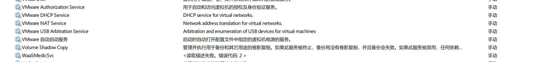 因为vm服务比较占用内存 所以在不用的时候想要关闭所以vm服务 想使用的时候开启所有服务。