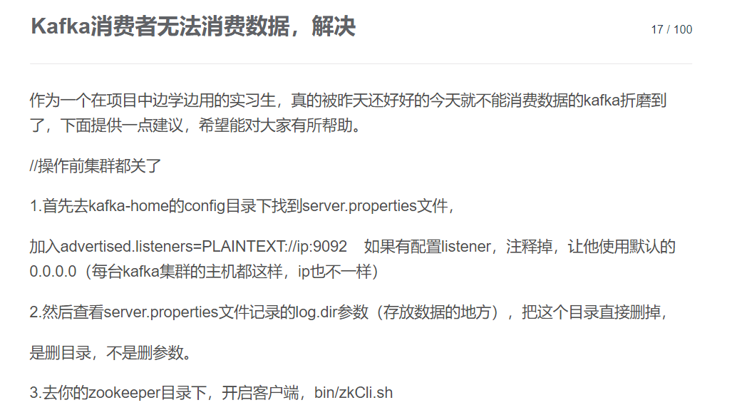 Kafka消费者无法消费数据,解决