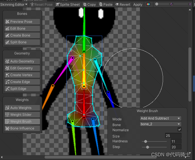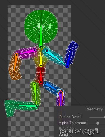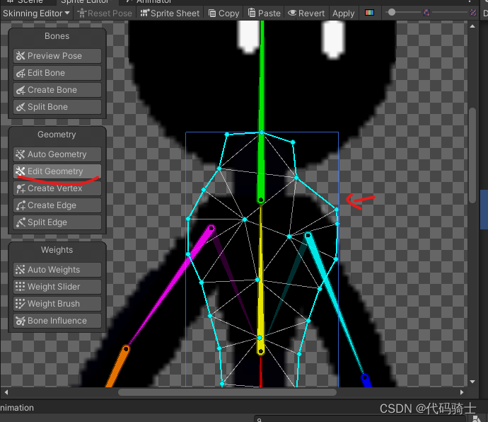 点击Edit Geometry可以编辑角色身体上包围的网格;点击下方的按钮还可以创建结点,编辑或者分割。