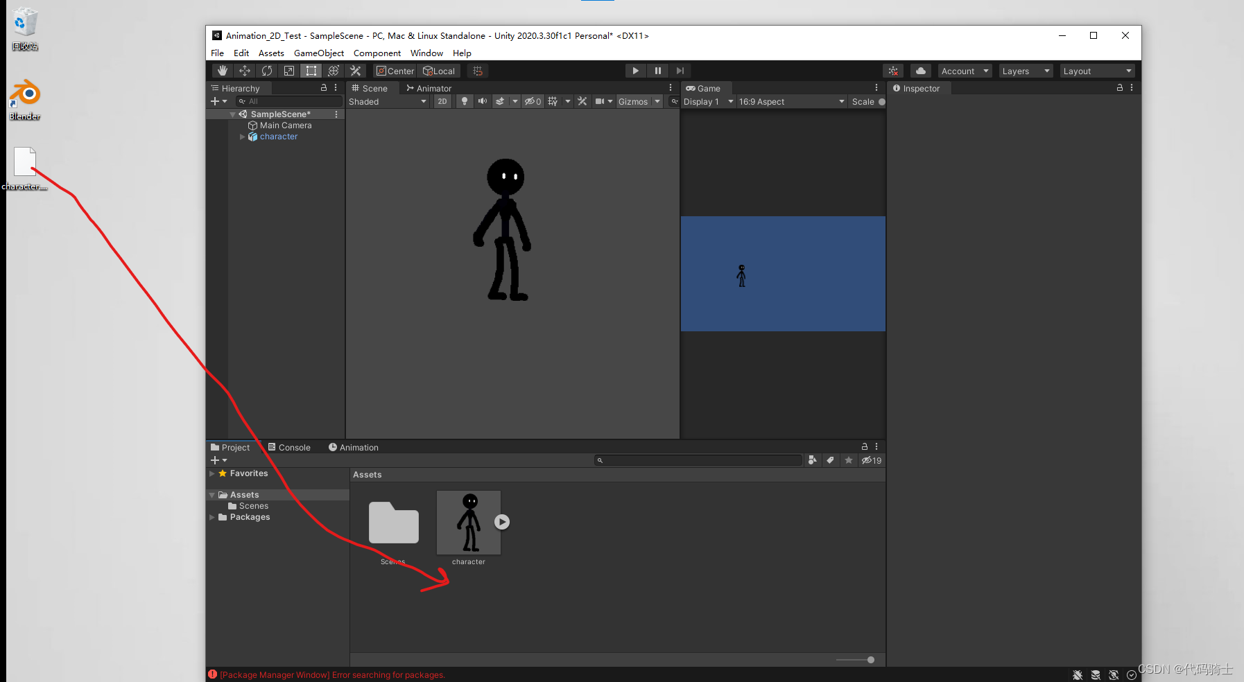将角色拖进场景中