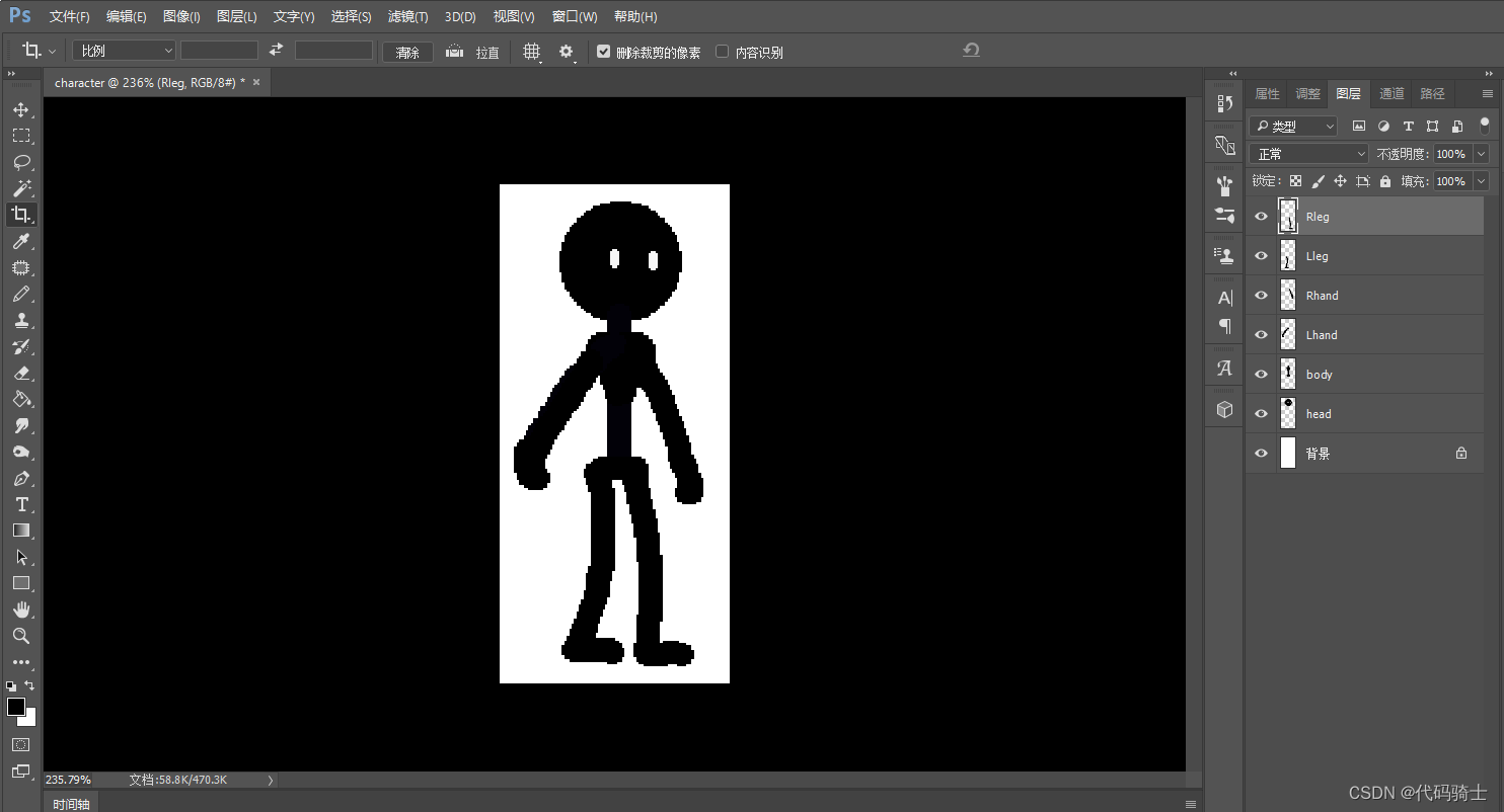 创建人物:这里需要注意的是,人物的头、手、身体、脚都要放在单独的图层里。