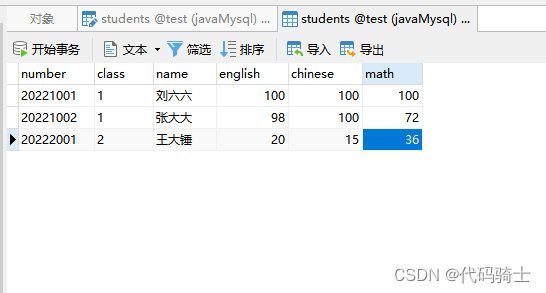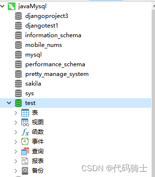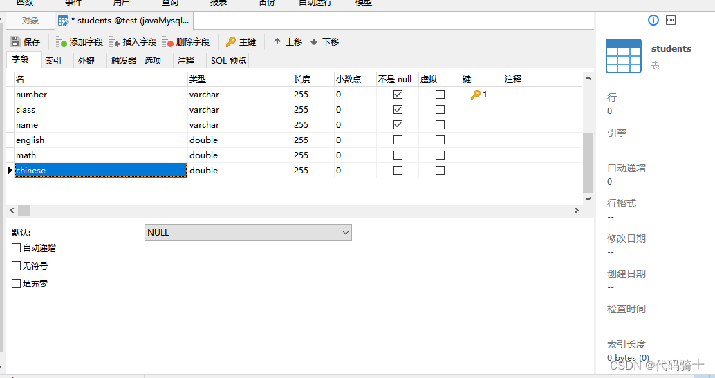 打开Navicat使用可视化功能在test数据库中创建一个表students: