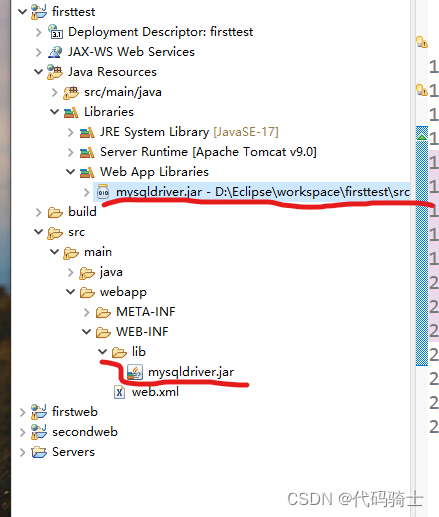 将下载好的驱动包(此处的驱动必须和mysql版本相对应)拖入WEB-INF的lib文件夹
