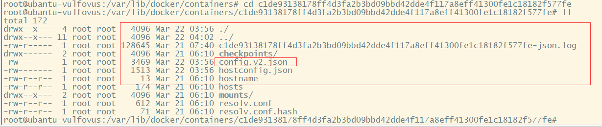 然后进入对应容器目录:cd /var/lib/docker/containers