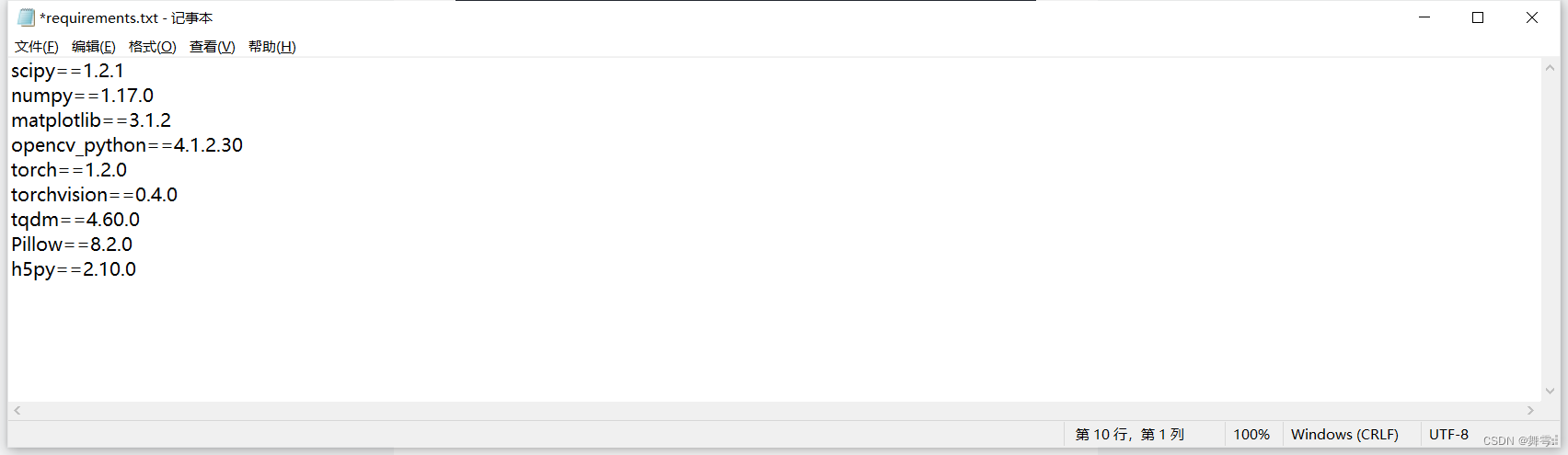 如果想要更便捷的安装可以在桌面或者其它地方创建一个requirements.txt文件,复制上述内容到txt文件中。