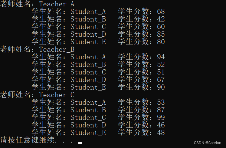 cout << "学生分数:" << t_arr[i].stu_arr[j].score << endl;