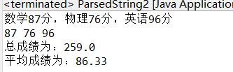 3、使用Scanner类和StringTokenizer类的实例分别解析字符串:"数学87分,物理76分,英语96分"中的考试成绩,并计算出总成绩以及平均分数。