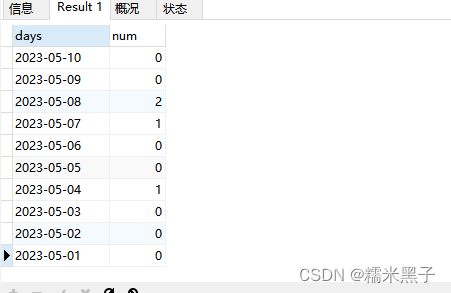 这里我们可以先查出本月的全部日期做一个虚拟表