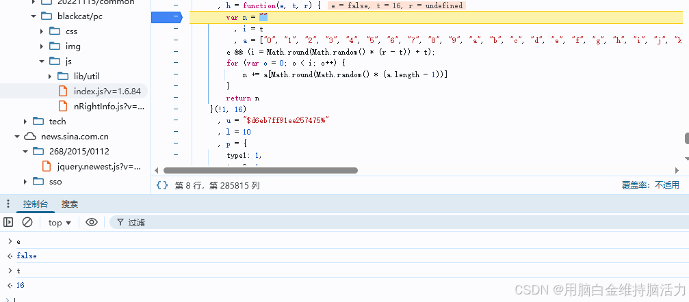 那必须就是我们第一次请求这个网站的时候啦,所以我们现在要做的,就是把断点打在h 上,然后刷新网页,就可以断在这里。