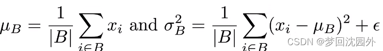 由于对每一层进行全白化(full whitening)的代价很高,并且也不是处处可微的,因此我们在两个方面做了简化处理。1、与之前联合白化层的输入和输出特征不同的是,我们独立的归一化每个标量特征,使其具有零均值和单位方差。对于某一层输入维度为d维,也即是,我们将归一化每一个维度,公式如下: