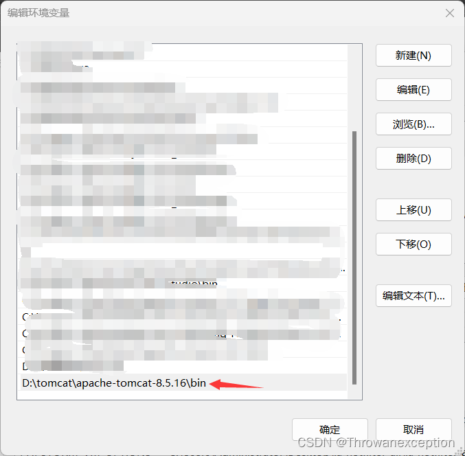 七、点击新建,输入D:\tomcat\apache-tomcat-8.5.16\bin