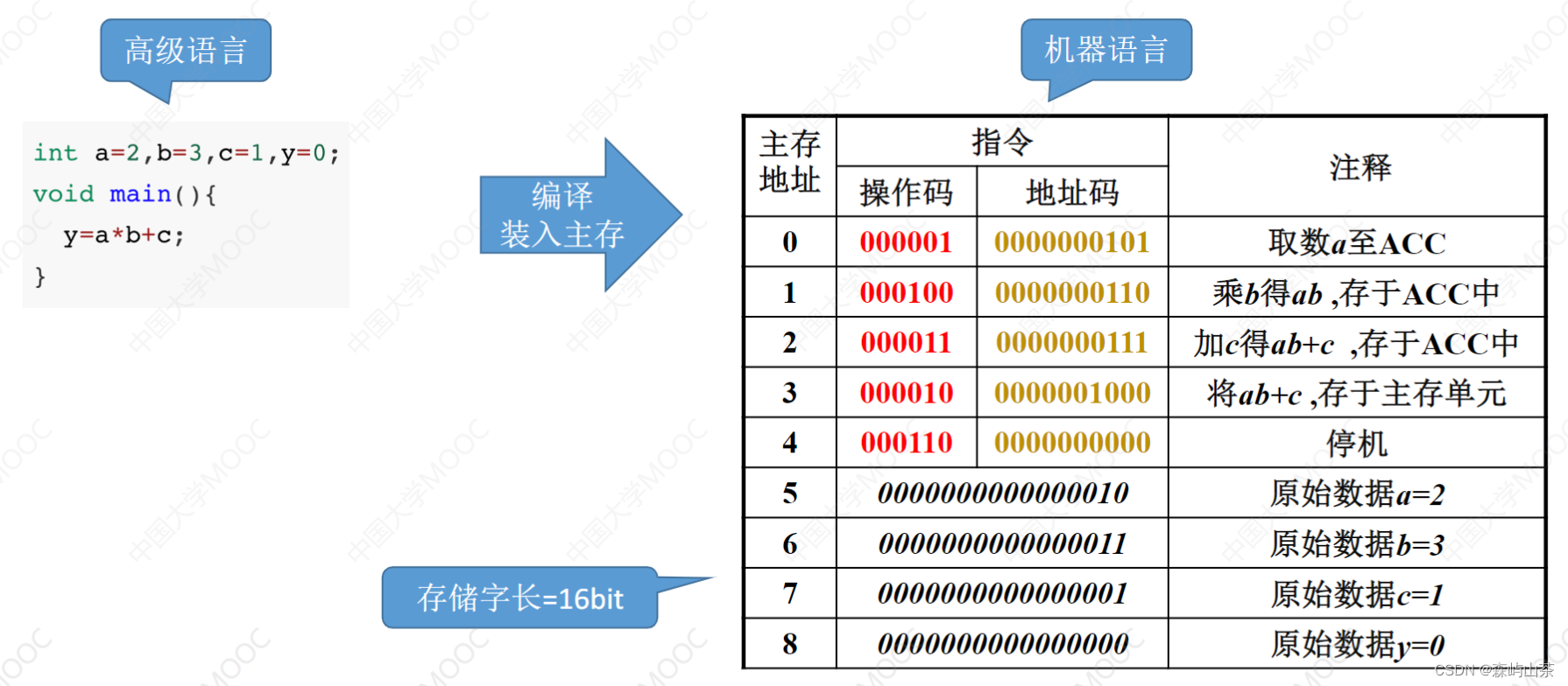 4)指令和数据均用二进制代码表示,指令由操作码和地址码组成,操作码支出操作类型,地址码指出操作数地址;