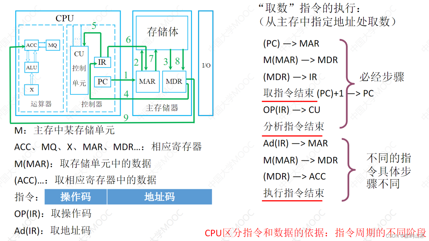 IR:指令寄存器,存放当前执行的指令(对用户透明不可见);