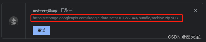 然后 Ctrl+j 弹出浏览器下载内容页面。找到正在下载的数据集,右键链接复制。