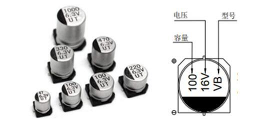 贴片铝电解电容本体黑色丝印一边为电容负极引脚。