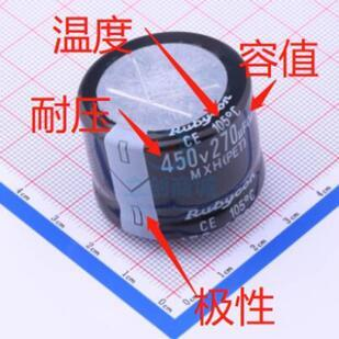如图中直接标识此电容容量值为270uF。电容的基本单位为F(法拉),但法拉单位非常大,一般超级电容才会用到这么大的单位;对于我们实际电路设计应用中的电容单位通常uF,nF,PF.