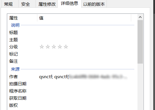 解压附件得到一堆小fu狸表情包,挨个查看文件属性详细信息,即可获得flag。