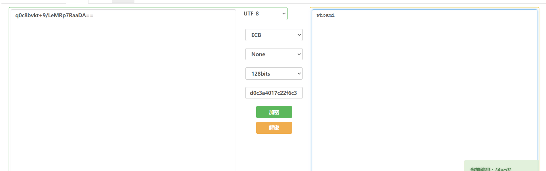 观察其开头为U2Fsd,根据经验猜测为AES加密,密钥为前文得到的key值。寻找在线网站(https://www.sojson.com/encrypt_aes.html)进行解密。