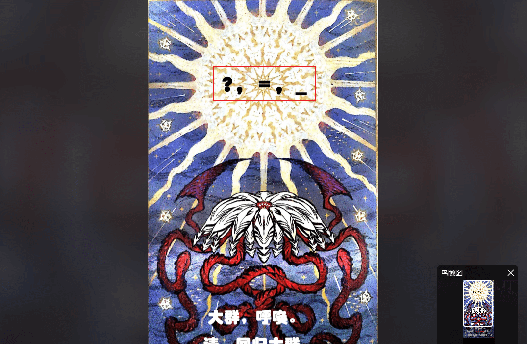 解压附件得到一张图片,在右上角有一个二维码,拿手机扫描到公众号回复指定内容即可获得flag。(注意!这张图片QR Research或者草料二维码网站是扫不出内容的,需要拿stegsolve处理成单张二维码。)