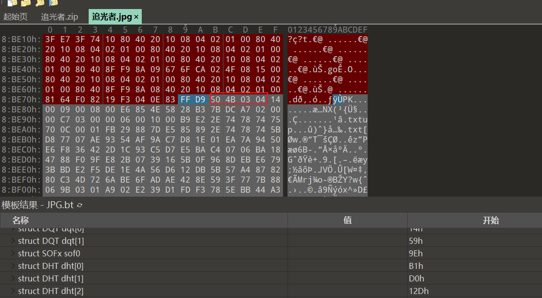下载解压附件得到一个zip文件和一张png图片,用010Editor打开图片,发现另一张图片。