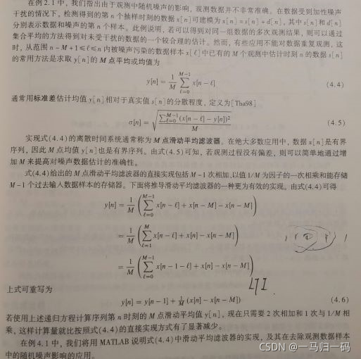 由于观测的信号被噪声污染,需要对其进行噪声的滤除,M 点滑动平均则是对该信号的某一个点及其前面的共 M 点取平均,从而得到该信号大致的样本值