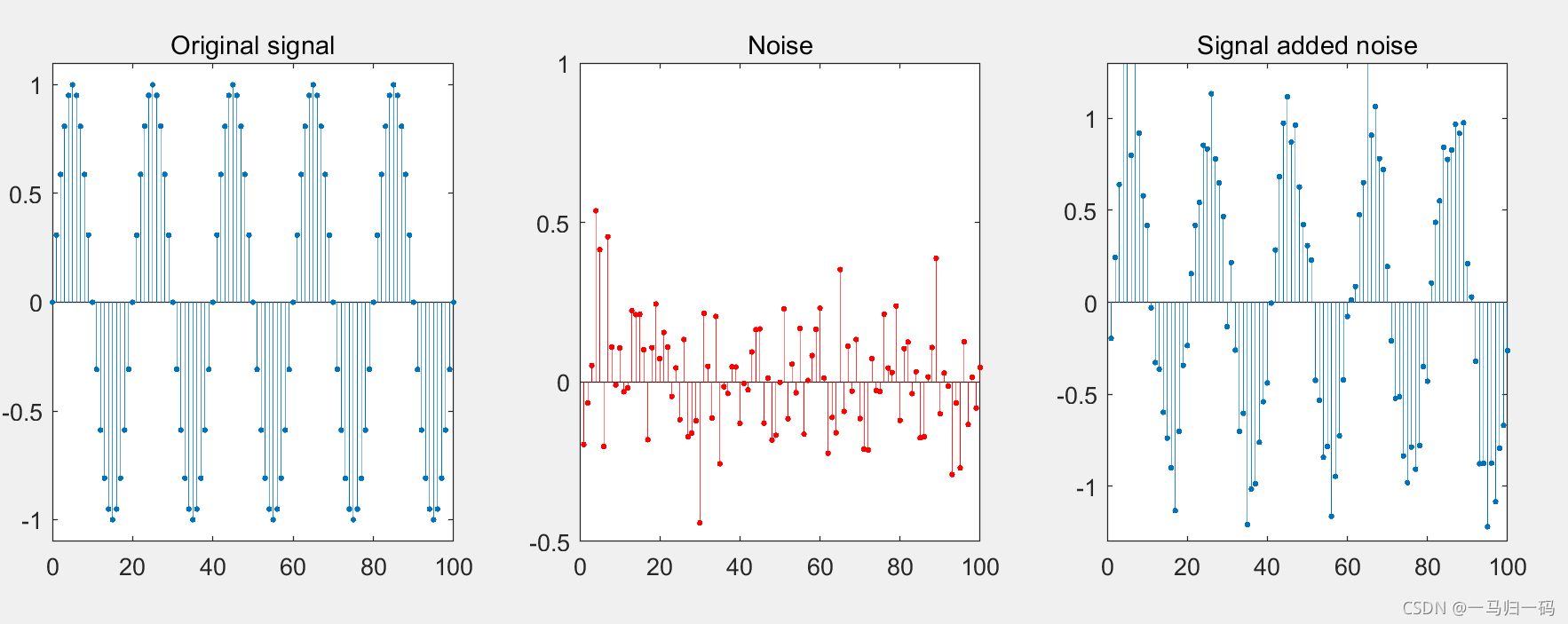 得到原始信号后对其进行加噪处理,生成噪声我们采用随机函数 randn
