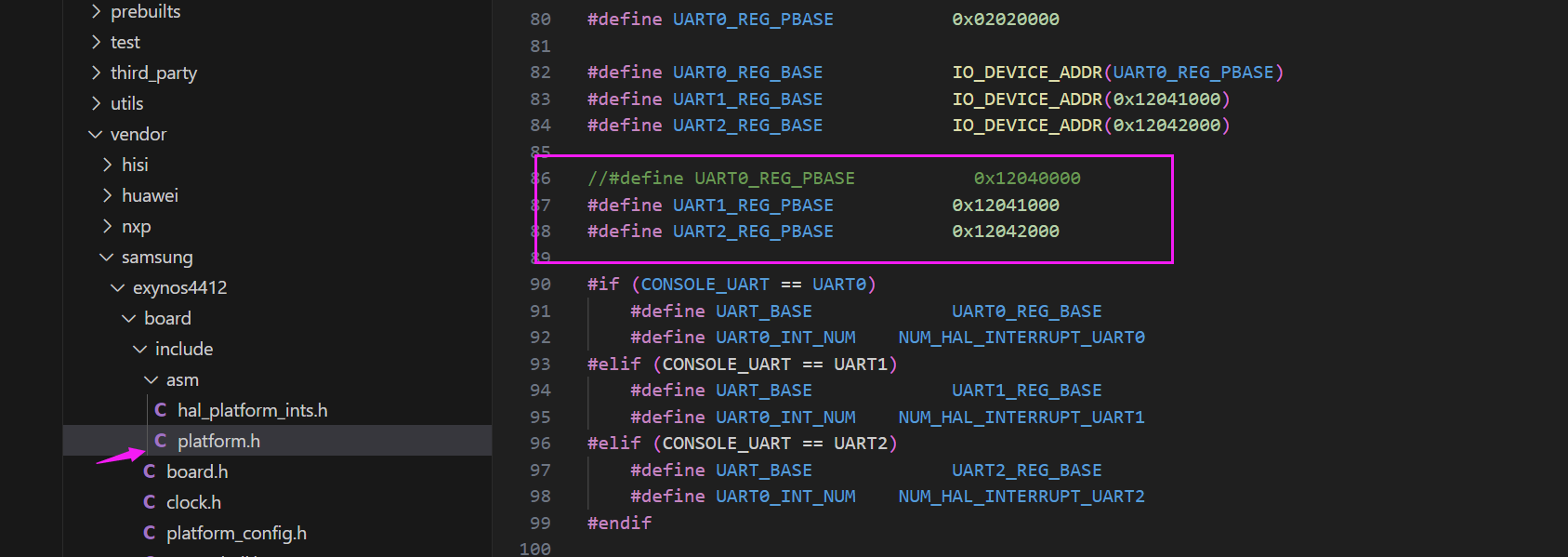 这里设置串口的物理基地址