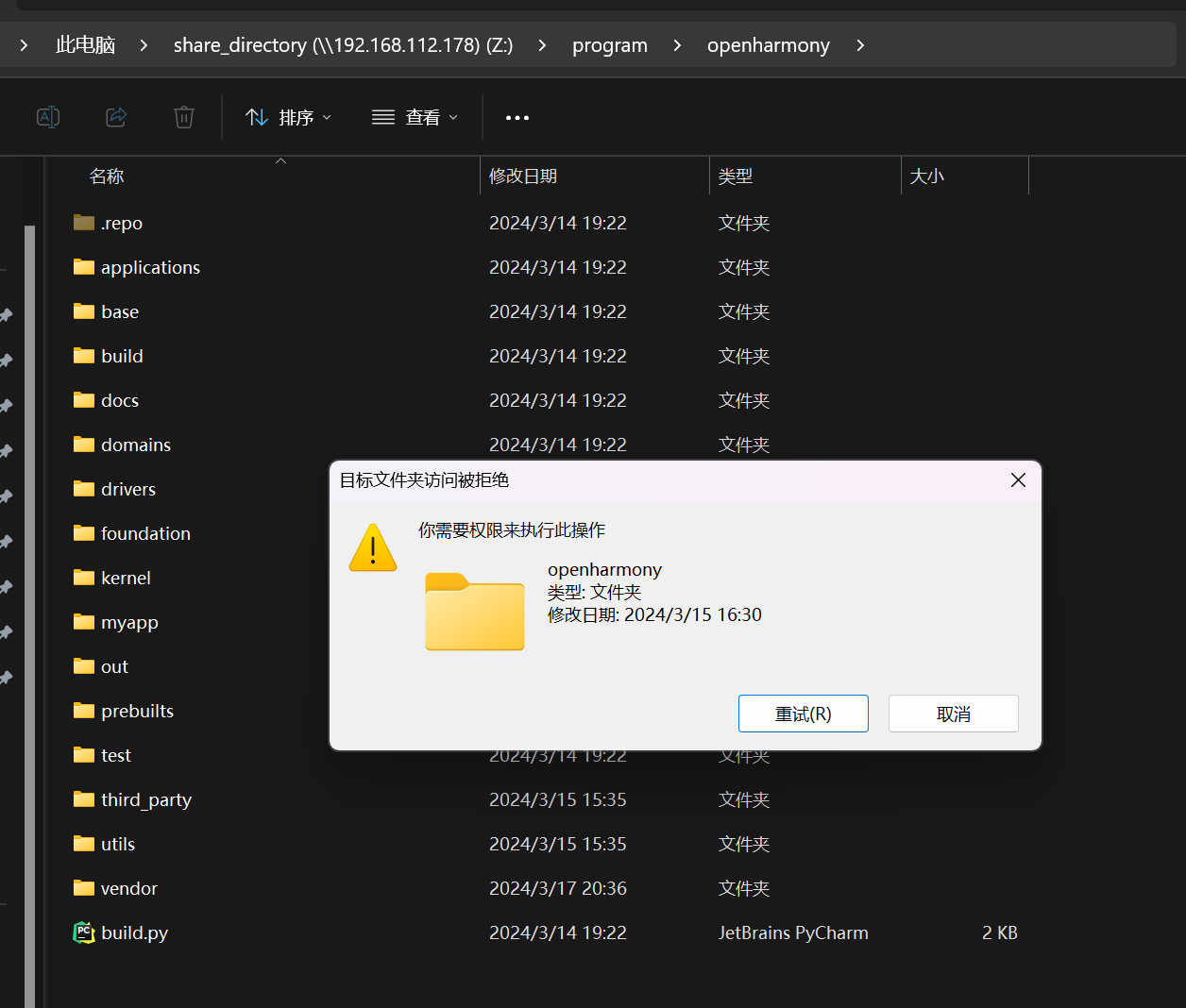 新建个目录放工程文件,这里没有权限。