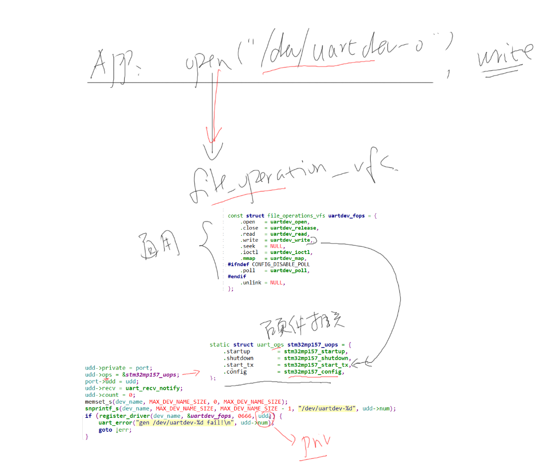 /dev/uartdev-0对应的驱动程序时uartdev_fops,它通过uart_ops来操作硬件。